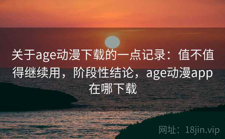 关于age动漫下载的一点记录:值不值得继续用,阶段性结论,age动漫app在哪下载